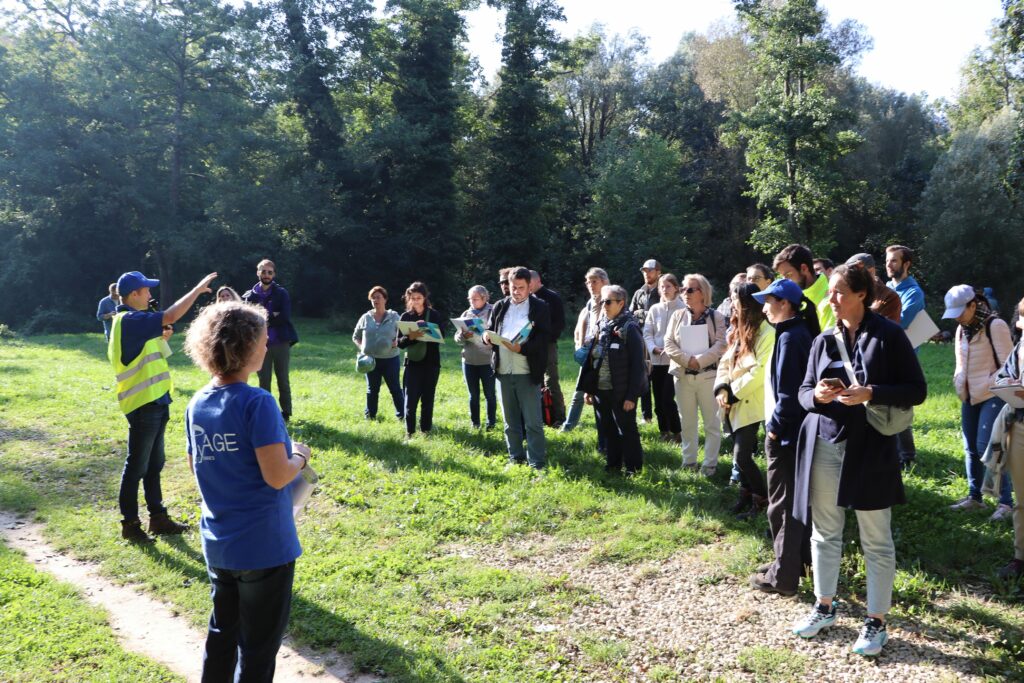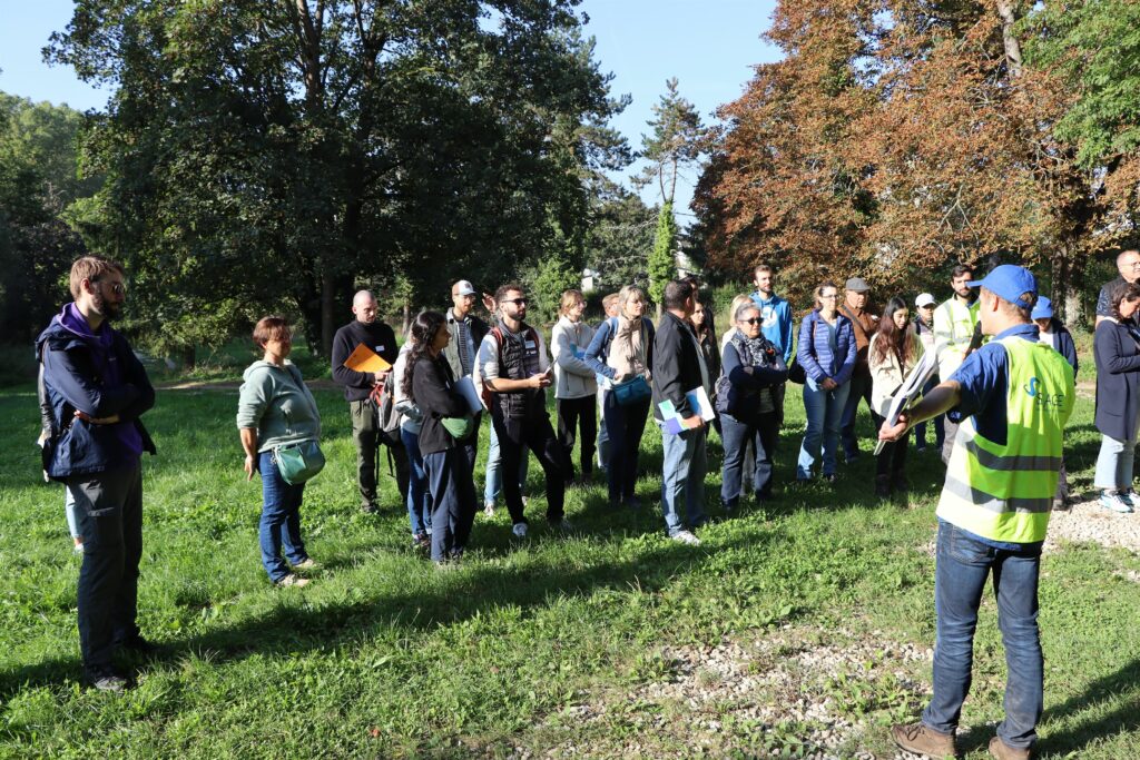 Guidé par Fabien Roudil, animateur du Contrat de territoire Eau et Climat Trame Verte et Bleue de l’Yerres, le groupe entame la journée avec la continuité écologique. « La suppression des barrages redonne vie aux rivières » explique Florence Knittel, technique GeMAPI au syAGE. Et ici, à Rochopt, ça saute aux yeux ! Depuis l’abaissement du barrage en 2018, les poissons ont fait leur grand retour, signes incontestables que l’eau reprend des couleurs. C’est toute la vie qui renaît : poissons, oiseaux et même le « chant » de la rivière, comme l’a joliment décrit le maire de Boussy-Saint-Antoine, Romain Colas. Mais les bénéfices vont au-delà de la biodiversité. Cette continuité écologique aide aussi à mieux gérer les inondations, offrant de précieuses heures supplémentaires en cas de crise.